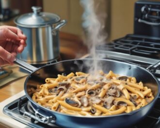 To prepare Creamy Garlic Mushroom Penne Pasta, start by cooking penne until al dente and set it aside. In a pan, sauté sliced mushrooms in olive oil or butter until golden, then add minced garlic and cook briefly. Pour in heavy cream, stir in grated Parmesan, Italian seasoning, and a pinch of red pepper flakes, letting the sauce simmer until thick and creamy. Add the cooked pasta to the sauce, tossing to coat evenly, and adjust consistency with a splash of reserved pasta water if needed. Finish with a sprinkle of fresh parsley and extra cheese before serving hot.